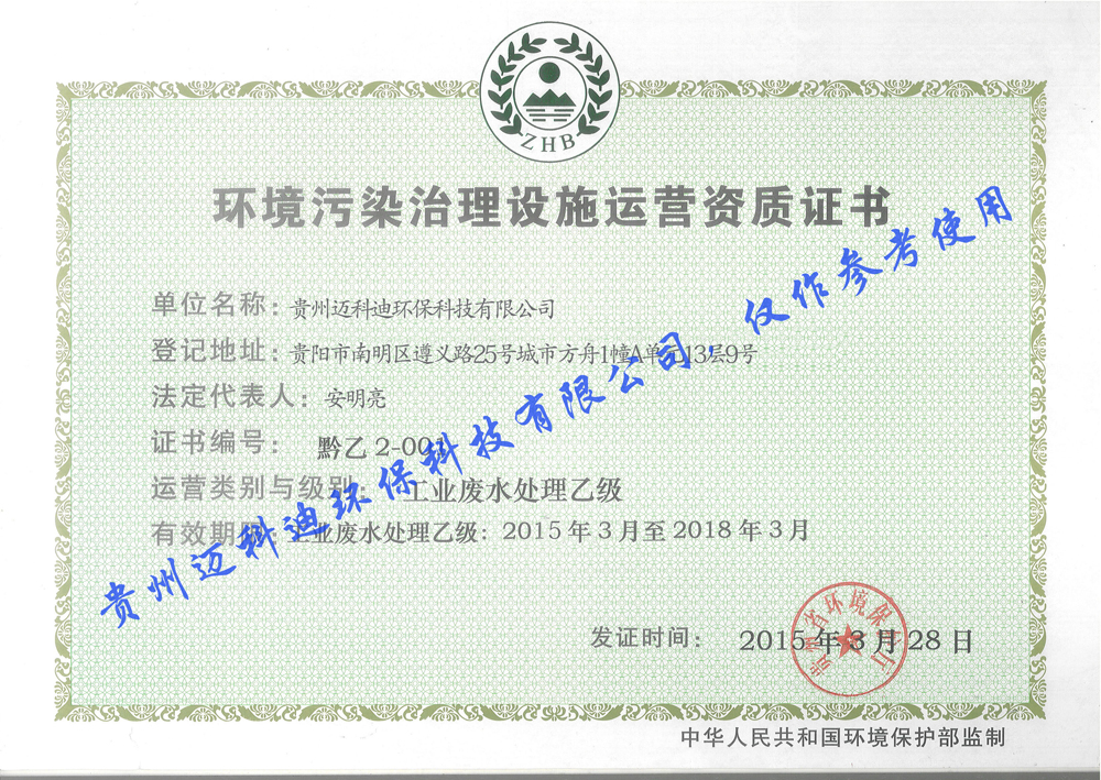 貴州邁科迪環??萍加邢薰?,是貴州省一家大型的綜合水處理設備公司,公司集純水,超純水,污水,工業廢水工程的設計,制作,安裝,調試,售后服務以及水處理設備技術和配件的研發,生產,銷售等于一體的大型環保專業化生產企業。本公司擁有高壓脈沖電絮凝水處理技術。在重金屬廢水處理,焦化廢水處理,磷化廢水處理,制藥廢水處理,皮革廢水處理,化工廢水處理,電鍍廢水處理,石油天然氣鉆井廢水處理等領域,取得了驕人的成績。公司經過多年的研究實踐,制研發出一體化工業廢水處理設備,一體化電子高壓脈沖電絮凝設備...